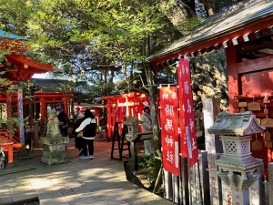 鳥居を入るとすぐに金運回廊で、吊るし賽銭箱が4つあります。